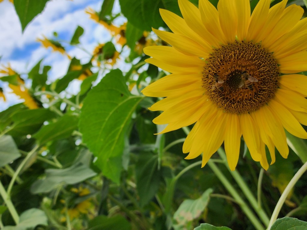 ハチさんのカップルもひまわりを満喫してるなぁ