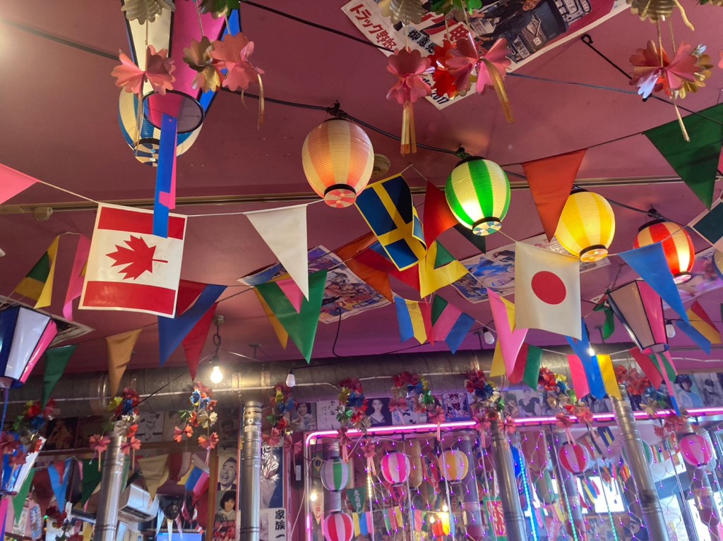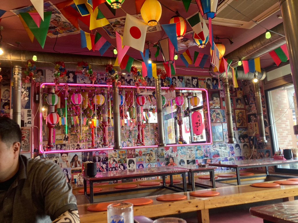 店内は昭和感溢れる懐かしい画像が壁一面に貼ってある