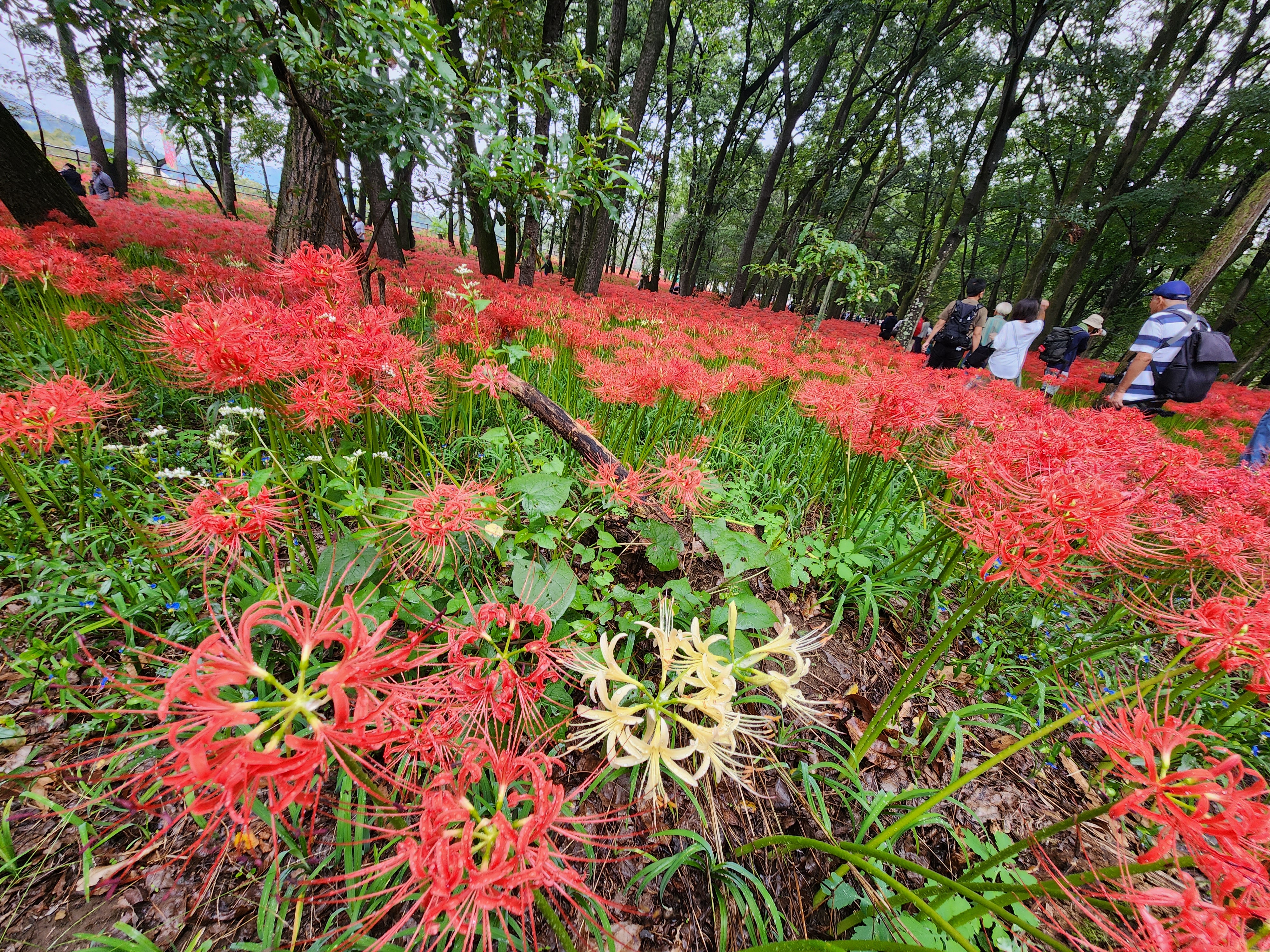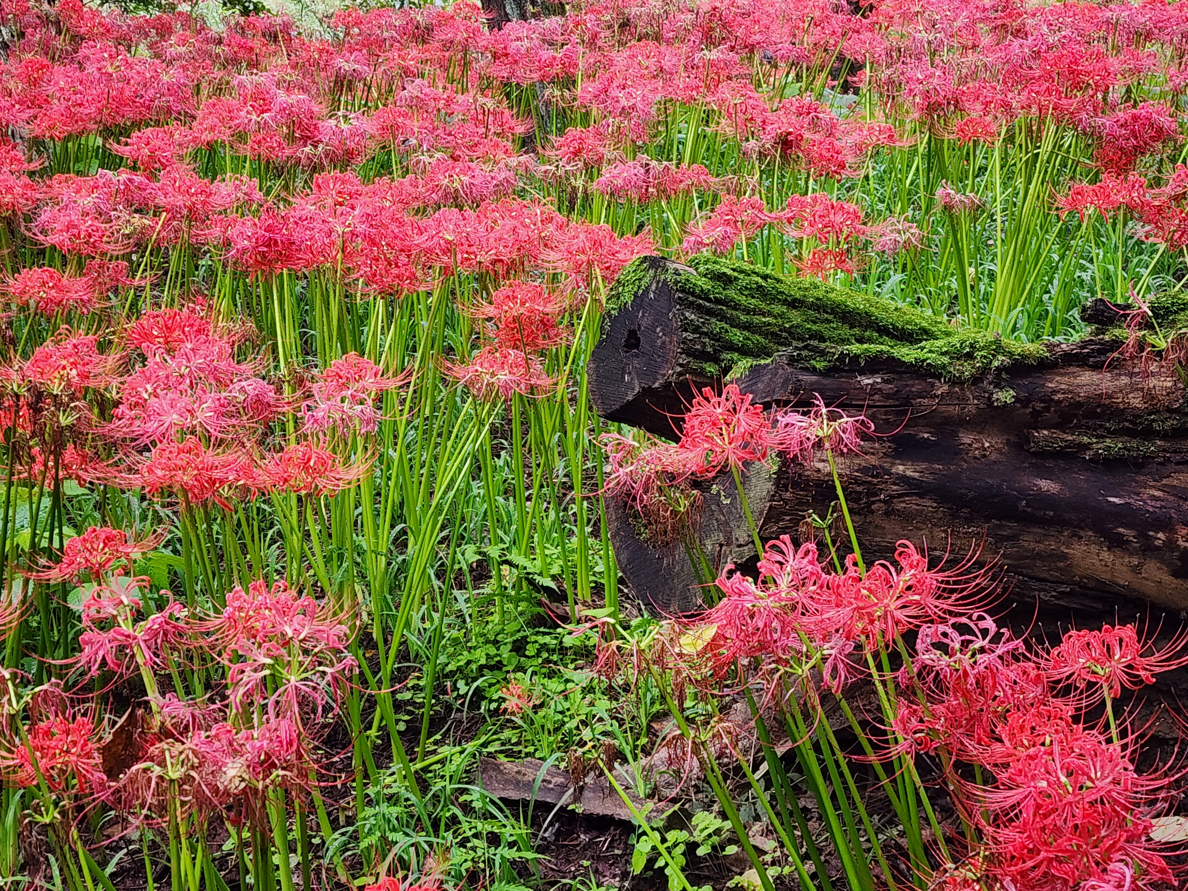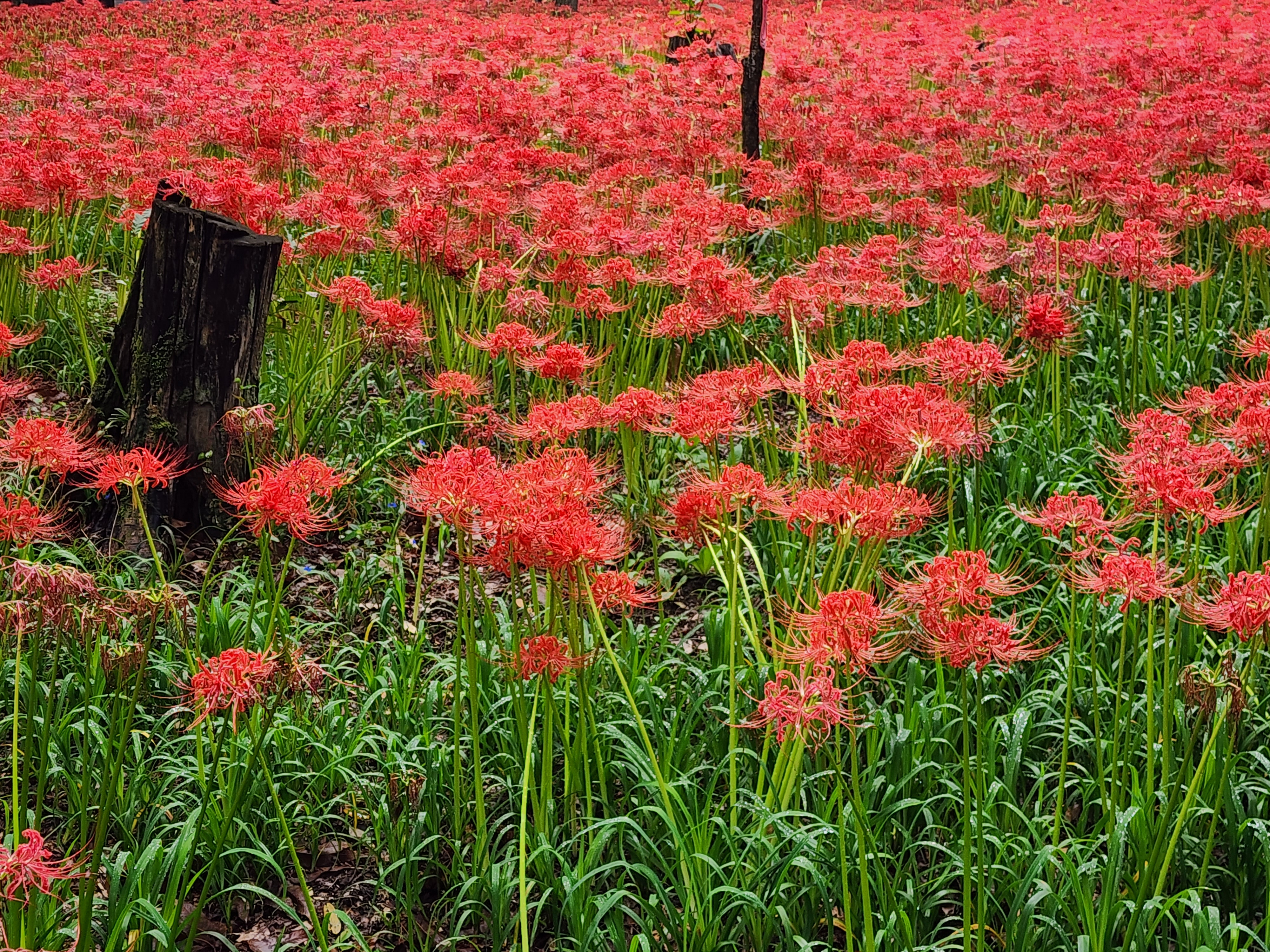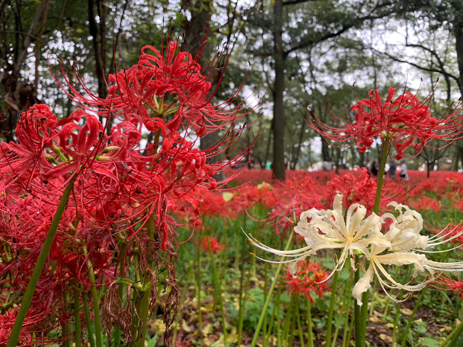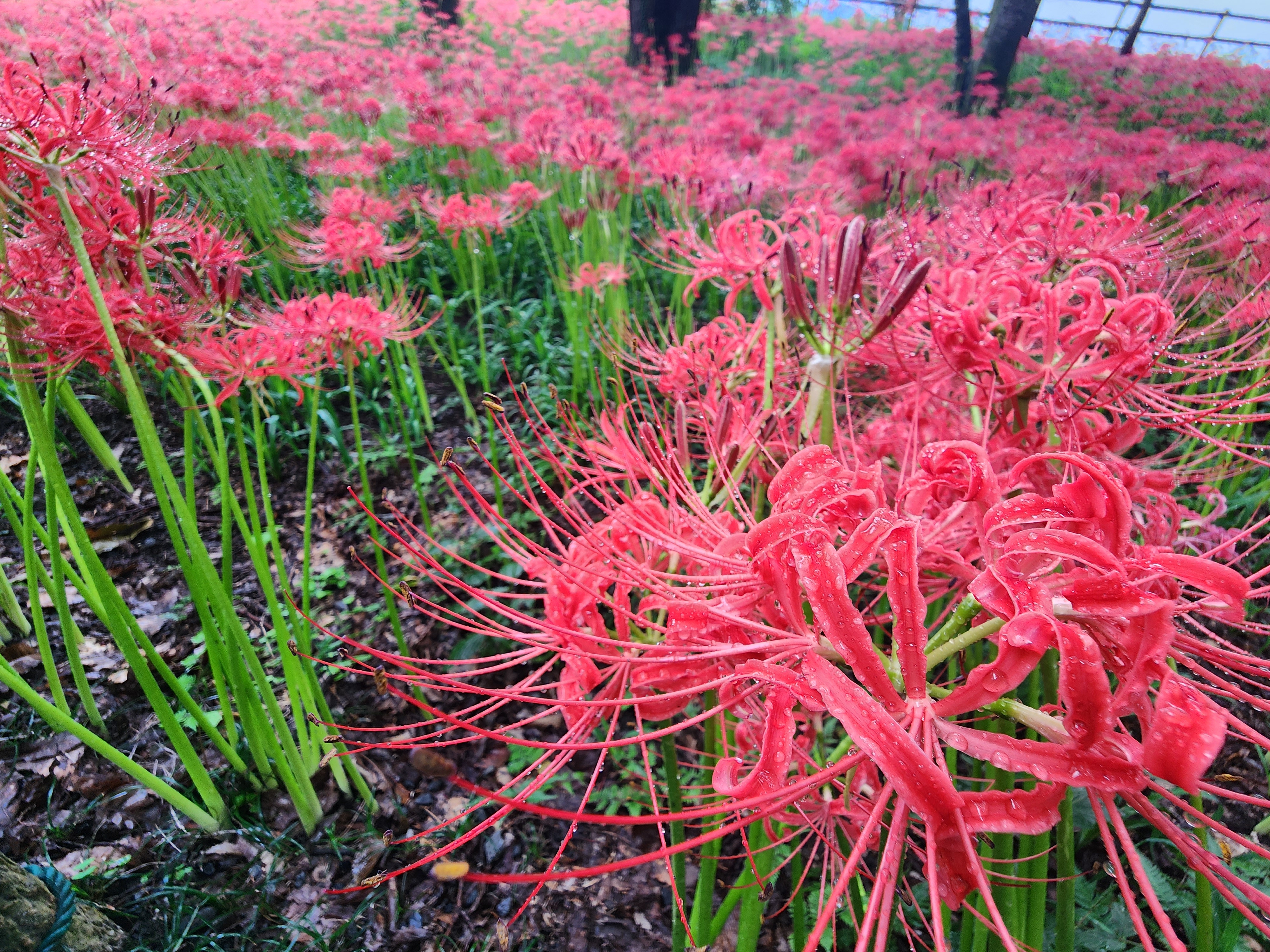 途中で雨も止んで曼珠沙華公園に着く頃には太陽も見え隠れするくらいには天候も復活