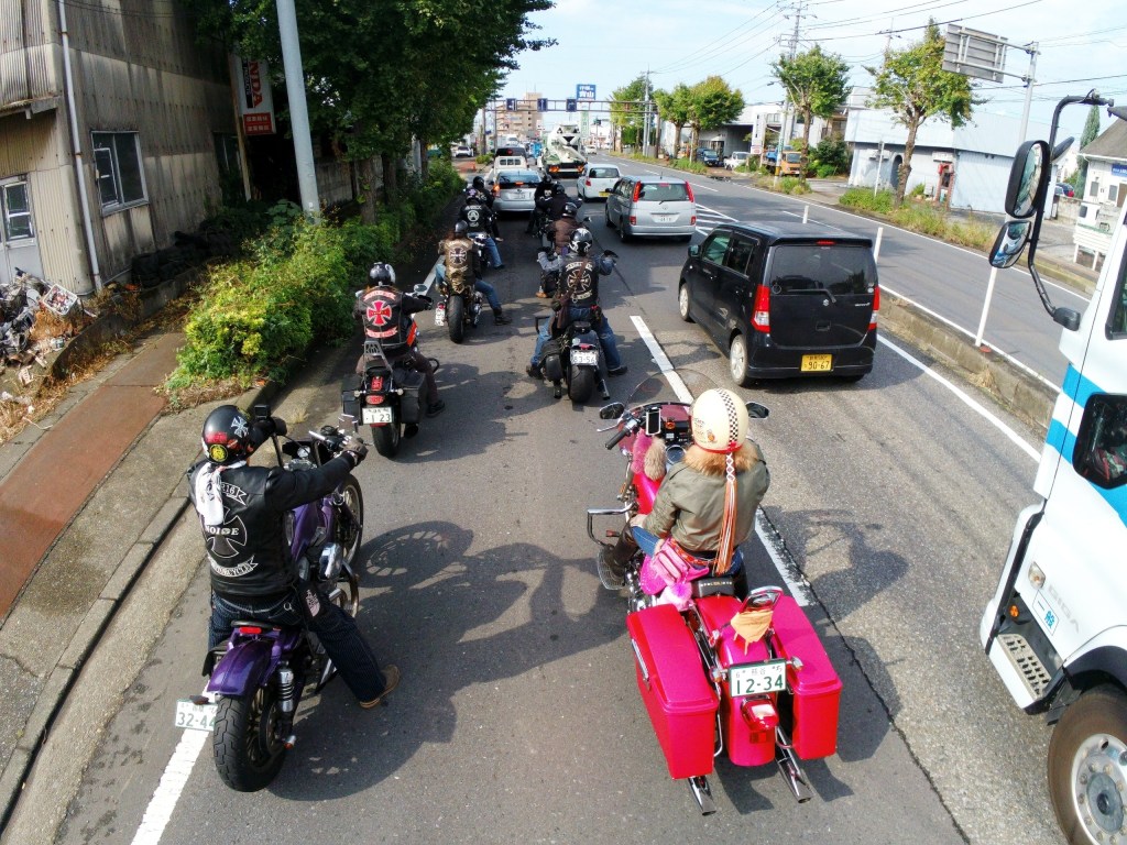 本日は初参加のMさんとKさんのお二人と羽生から合流のメンバーTさんのご友人ピンクのハーレーが目印のKさんを含め総勢12名が合流