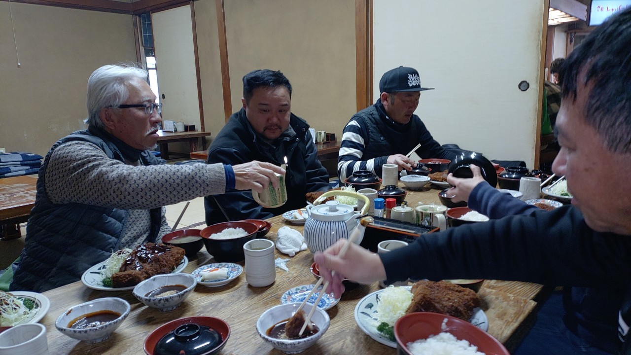 御刻印後に昼食予定の場所に電話で大型バイク7台で行けるか確認した所、駐車場は無く、近くのパーキングもハネ板のパーキングの為バイクでは駐車出来なそうだったので急遽NOISEツーリングでも何度か来てる「五郎十」というとんかつ屋さんに変更