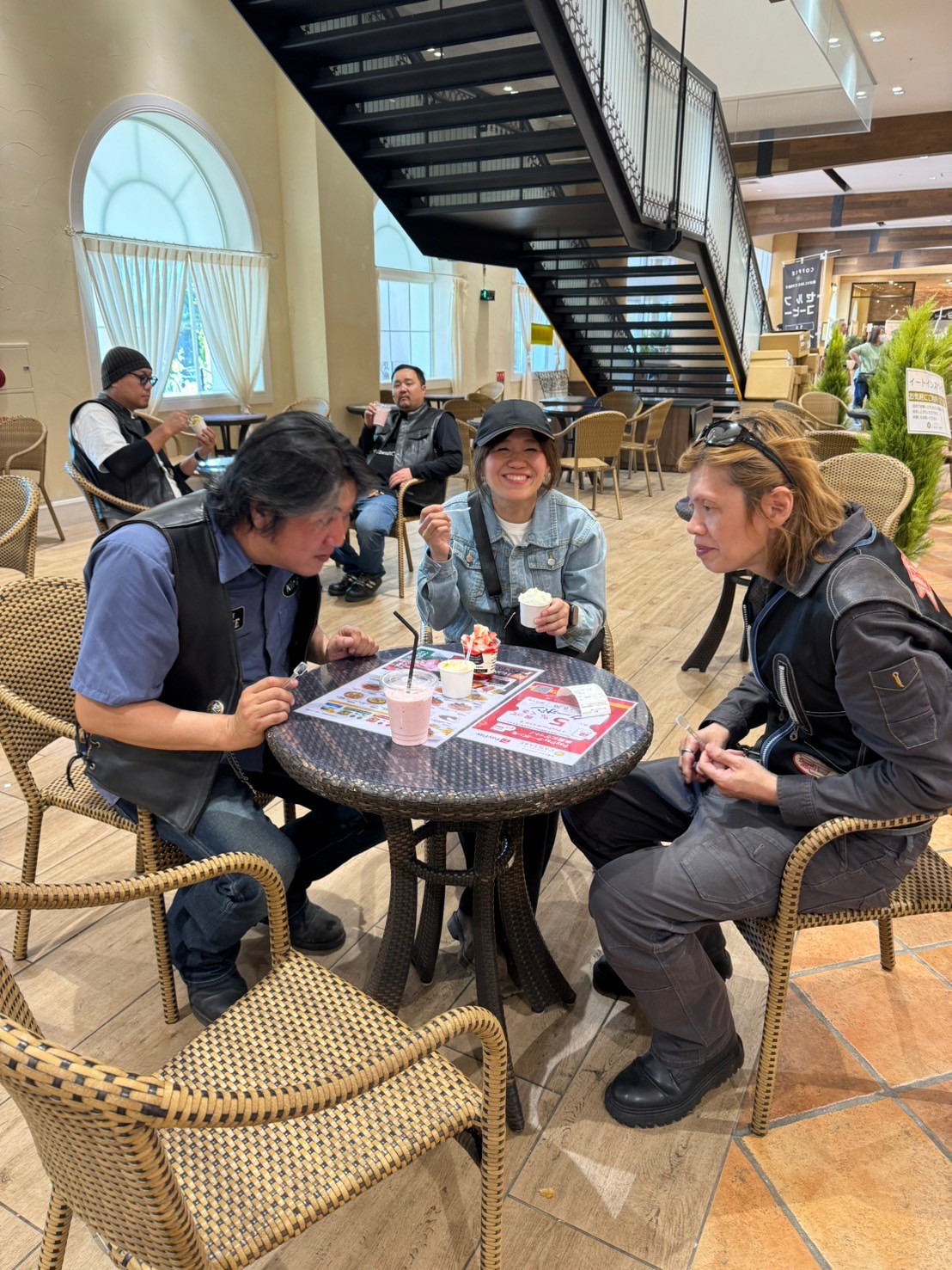 今日の全体の流れ、各目的地、役割分担を共有して安全で快適な楽しいツーリングになるよう朝礼をしつつ、新しいメンバーも含めてみんなで自己紹介